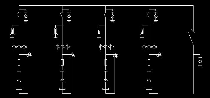電容柜:四臺,高壓電容器,串聯電抗器(6%),放電線圈,真空接觸器、傳感器、避雷器、溫控單元;