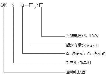 QKSG 型干式鐵芯串聯電抗器型號說明如下: